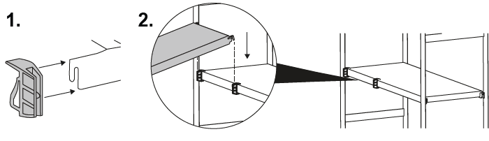 Bei der Montage von Eckregalen kommen für das Einhängen der Fachböden am Grundregal spezielle Klammern zum Einsatz: