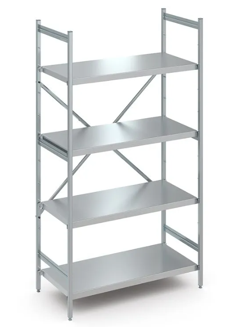 - Einsatzgebiete: als Lebensmittelregal in Tiefkühllager, Kühlzelle, Trockenlager, Produktionsküchen, Spülküchen, als dauerhaftes Industrieregal, Laborregal etc.