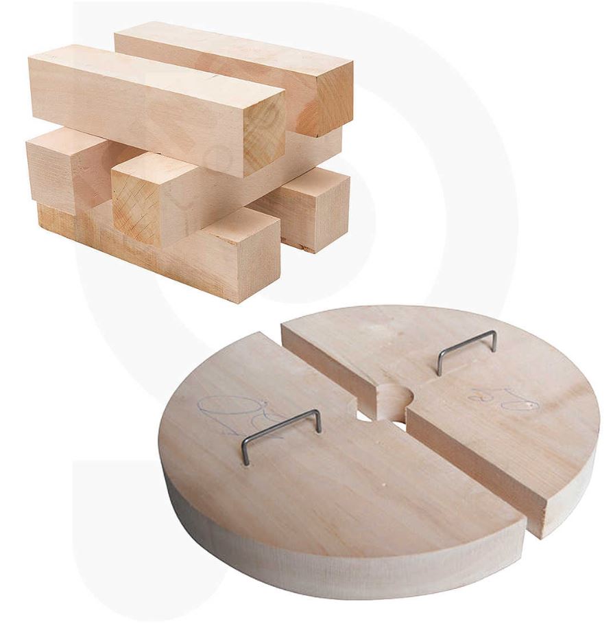 - 1 Satz Presshölzer bestehend aus 2 Stück Halbmonden Radius 190 mm, 50 mm dick und 6 Stück Kanthölzern