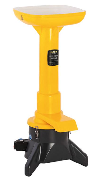 Die elektrische Obstmühle von Speidel aus robustem Kunststoff zerschneidet Kernobst (kein Steinobst!) optimal: Nicht zu grob und nicht zu fein, sondern genau in der Schnittgröße, die die höchste Saftausbeute beim Pressen und eine rasche Vergärung beim Einmaischen garantiert. Sie kann an eine normale 230-Volt-Schukosteckdose angeschlossen werden. Ein großer Fülltrichter erleichtert das Einfüllen des Obstes direkt aus der Kiste. So sind bis zu 1.000 Kilogramm Stundenleistung möglich. Auch das Reinigen ist einfach: Trichter abnehmen, Mahlwerk und Trichter mit Wasser abspritzen, fertig.