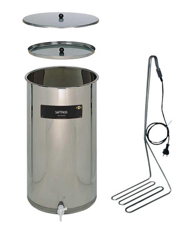 Das Saftfass 110 Liter aus Edelstahl mit Tauchsieder und Schwimmdeckel (Lieferung inklusive) hat folgende Eckdaten: